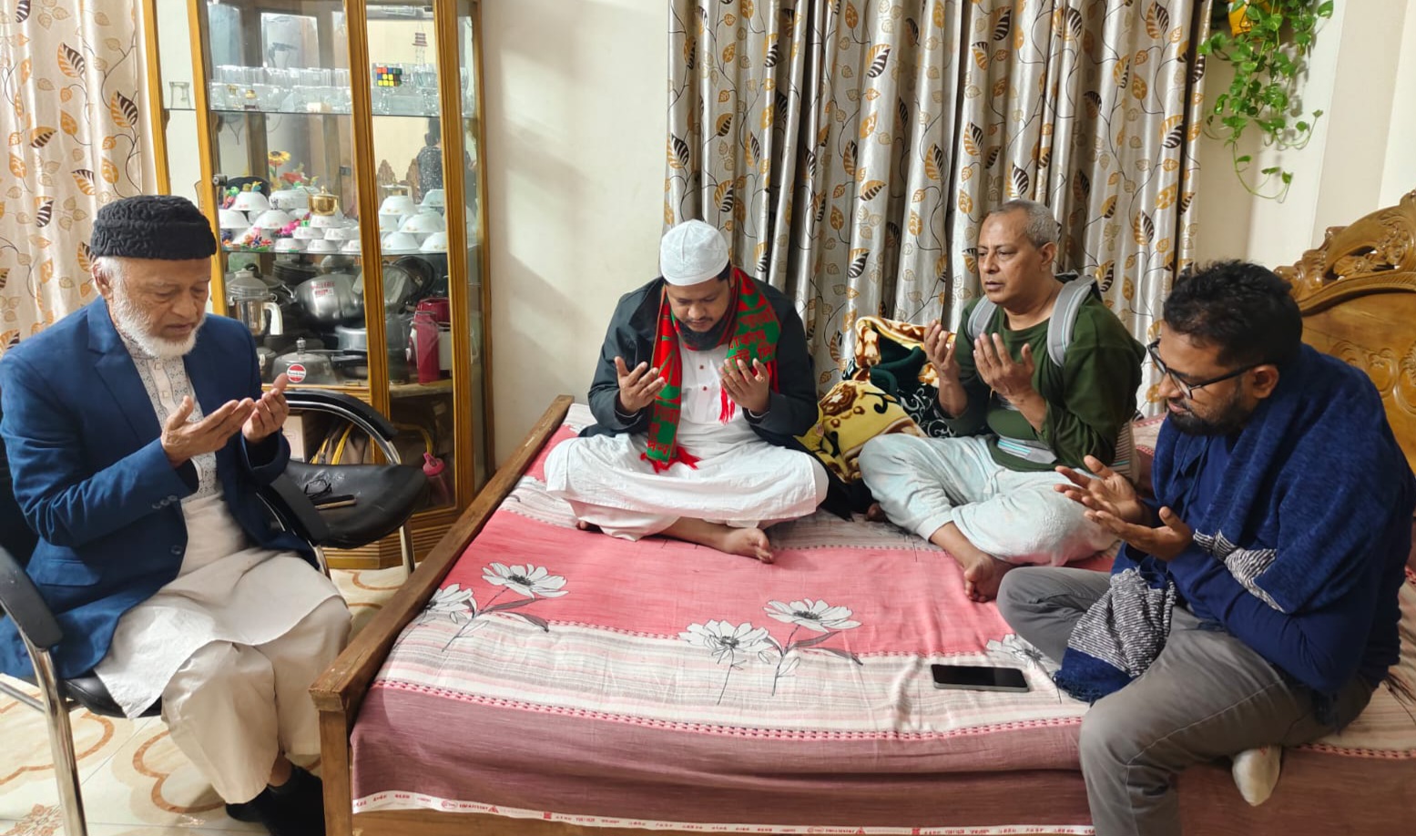জামায়াতের কেন্দ্রীয় কর্মপরিষদ সদস্য মাওলানা মইনুদ্দিন আহমাদ, নারায়ণগঞ্জ মহানগরী জামায়াতের আমির ও কেন্দ্রীয় কর্মপরিষদ সদস্য মাওলানা আবদুল জব্বার ও মহানগর শ্রমিক কল্যাণ ফেডারেশন সভাপতি হাফেজ আব্দুল মোমিন। এ সময় তার রোগ মুক্তির জন্য মহান আল্লাহর কাছে দোয়া করেন।