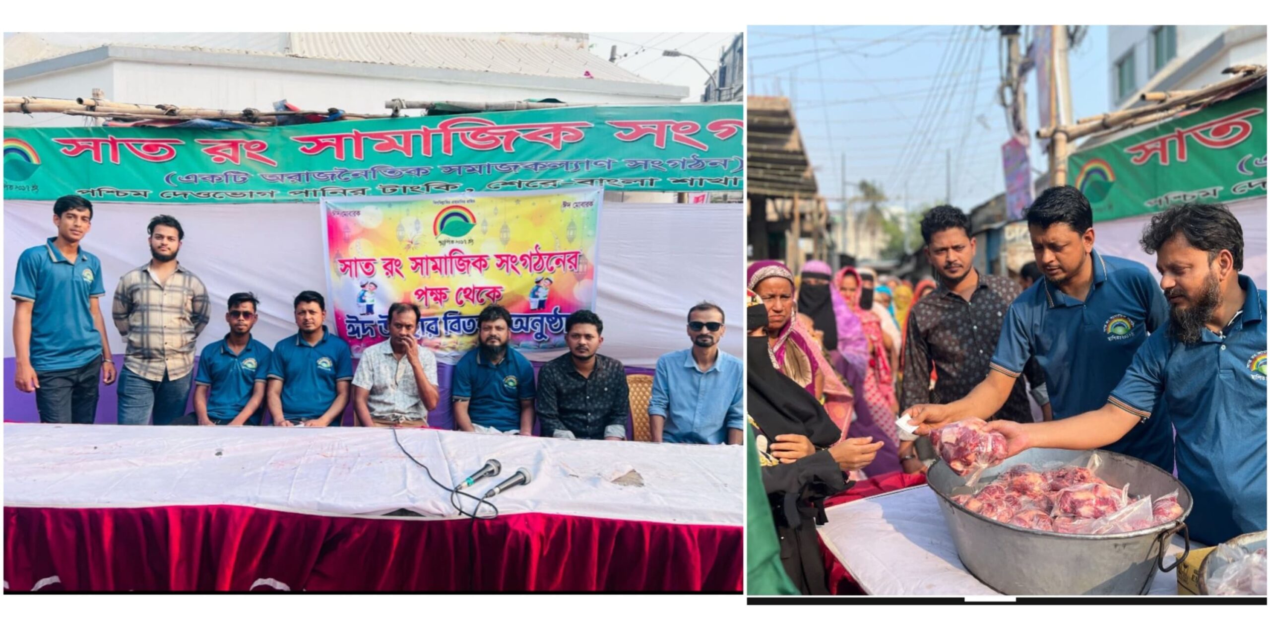 দেওভোঙ সংগঠনের ্নউদ্রাযোগে ্য়ণগঞ্জ বার্তা ২৪ (সংবাদ বিজ্ঞপ্তি ) : ঈদুল ফিতরকে সামনে রেখে অসহায় ও নিম্নআয়ের মানুষের পাশে দাঁড়াতে ব্যতিক্রমী উদ্যোগ নিয়েছে দেওভোগ পানির টাংকি স্কুল মাঠ সংলগ্ন সাত রং সামাজিক সংগঠন। সংগঠনটির উদ্যোগে এলাকার ৩২০টি পরিবারের মাঝে ১ কেজি করে গরুর গোস্ত বিতরণ করা হয়।
