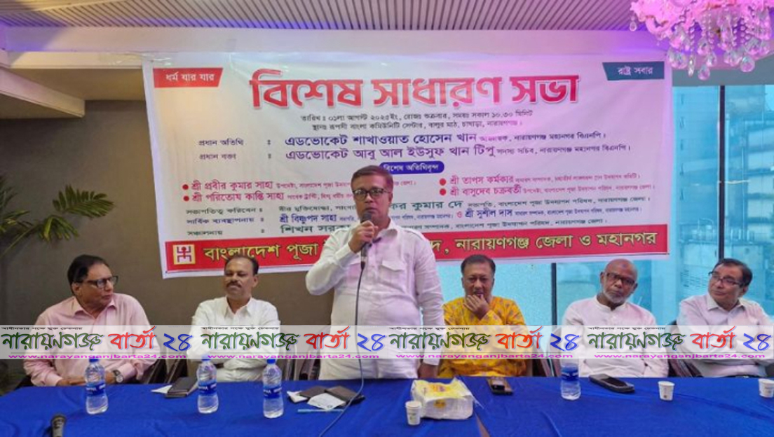 শুক্রবার (১ আগস্ট) সকালে চাষাড়ার রূপসী বাংলা কমিউনিটি সেন্টারে বাংলাদেশ পূজা উদযাপন পরিষদ নারায়ণগঞ্জ জেলা ও মহানগর কমিটির বিশেষ সাধারণ সভায় প্রধান অতিথির বক্তব্যে তিনি এসব কথা বলেন।