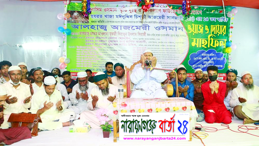 নারায়ণগঞ্জ বার্তা ২৪ : নাসিম ওসমান স্মৃতি ও দুস্থ জনকল্যাণ ফাউন্ডেশনের উদ্যোগে খাজা মঈনুদ্দিন চিশতী আজমেরী সানজারী (রা:) ১৪ তম বার্ষিক ওয়াজ ও দোয়া মাহফিল অনুষ্ঠিত হয়েছে। ১৪ই মার্চ রবিবার নারায়ণগঞ্জ কেন্দ্রীয় বাস টার্মিনাল প্রাঙ্গনে এই আয়োজন করা হয়।