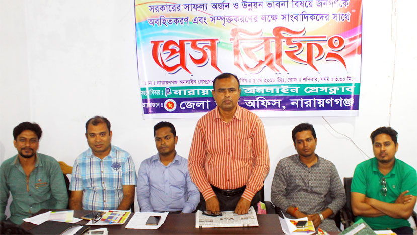 নারায়ণগঞ্জ অনলাইন প্রেসক্লাবের আহ্বায়ক ও লিগ্যাল রিপোর্ট ডটকমের সম্পাদক এড. শাহ আলী, মো. পিন্টু খানের সভাপতিত্বে জেলা তথ্য অফিসার সিরাজ উদ-দৌলা খান প্রেস ব্রিফিংয়ে বলেন, সোনার বাংলা গড়ার স্বপ্ন বাস্তবায়নে প্রধানমন্ত্রী শেখ হাসিনার নেতৃত্বে ক্ষুধা ও দারিদ্র্যমুক্ত দেশ গড়ার লক্ষ্যে রূপকল্প ২০২১ গ্রহণ করা হয়। এমডিজিতে সাফল্যের পর ২০১৬ সাল থেকে টেকসই উন্নয়ন লক্ষ মাত্রা বাস্তাবায়নের পথে এগিয়ে চলছে দেশ। বর্তমানে বাংলাদেশ স্বল্প উন্নত থেকে উন্নয়নশীল দেশে অগ্রগামী হয়েছে।