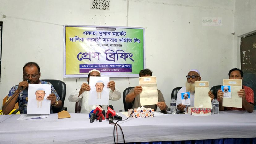 নারায়ণগঞ্জ বার্তা ২৪ ( নিজস্ব প্রতিবেদক ) : বন্দর উপজেলা বিএনপির সভাপতি মাজহারুল ইসলাম হিরণের বিরুদ্ধে হুমকি ও হয়রানির অভিযোগ এনে সংবাদ সম্মেলন করেছেন মদনপুর একতা সুপার মার্কেটের ব্যবসায়ীরা। ২৫ অক্টোবর শনিবার বেলা ১২টায় মার্কেটের তৃতীয় তলায় এই সংবাদ সম্মেলন অনুষ্ঠিত হয়েছে। সংবাদ সম্মেলনে মদনপুর একতা সুপার মার্কেট বহুমুখী সমবায় সমিতির সাবেক সাধারণ সম্পাদক ও বর্তমান কমিটির উপদেষ্টা নজরুল ইসলাম এবং পরিচালনা কমিটির সদস্য সোহেল রানা জানান, আমাদের সমিতির ১০১ জন সদস্য রয়েছে। এরমধ্যে বিপথগামী ৫/৬ জন সদস্যকে নিয়ে হিরন আমাদের বিরুদ্ধে হয়রানিমূলক মামলা, সমবায় অফিসে অভিযোগসহ হুমকি-ধামকি দিচ্ছে।